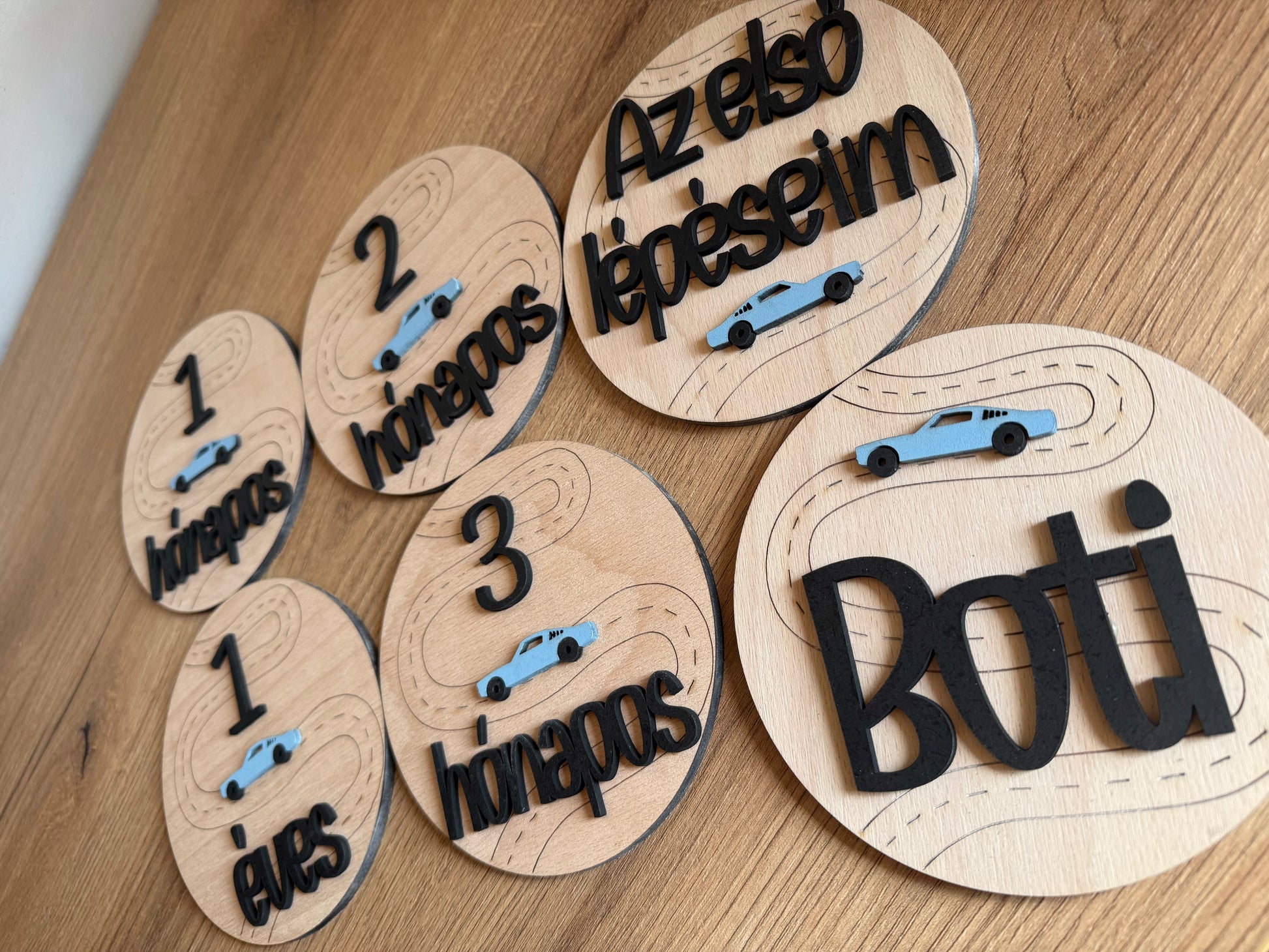 Az alapcsomag tartalmazza a 11 hónap + 1 év, illetve egy a baba nevével ellátot korongot is. Megjegyzés rovatban kérlek tüntesd fel a kisbaba nevét.